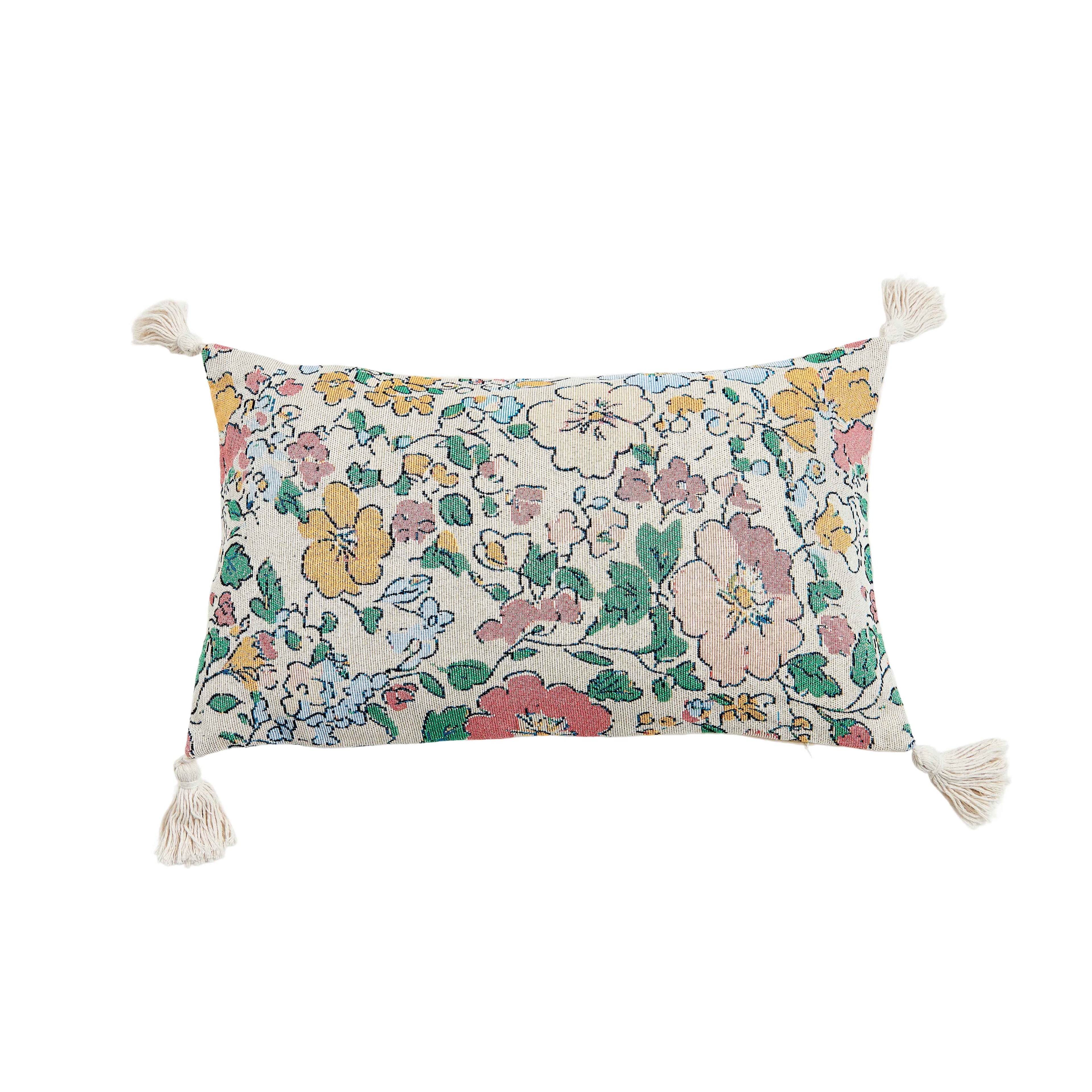Rectangular Decorative Pillow with Cotton-Linen Thread & Floral Pattern