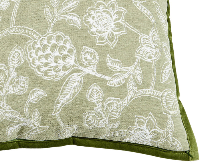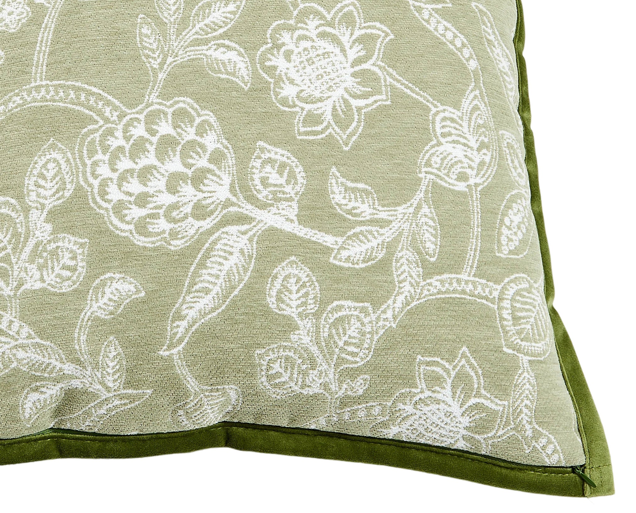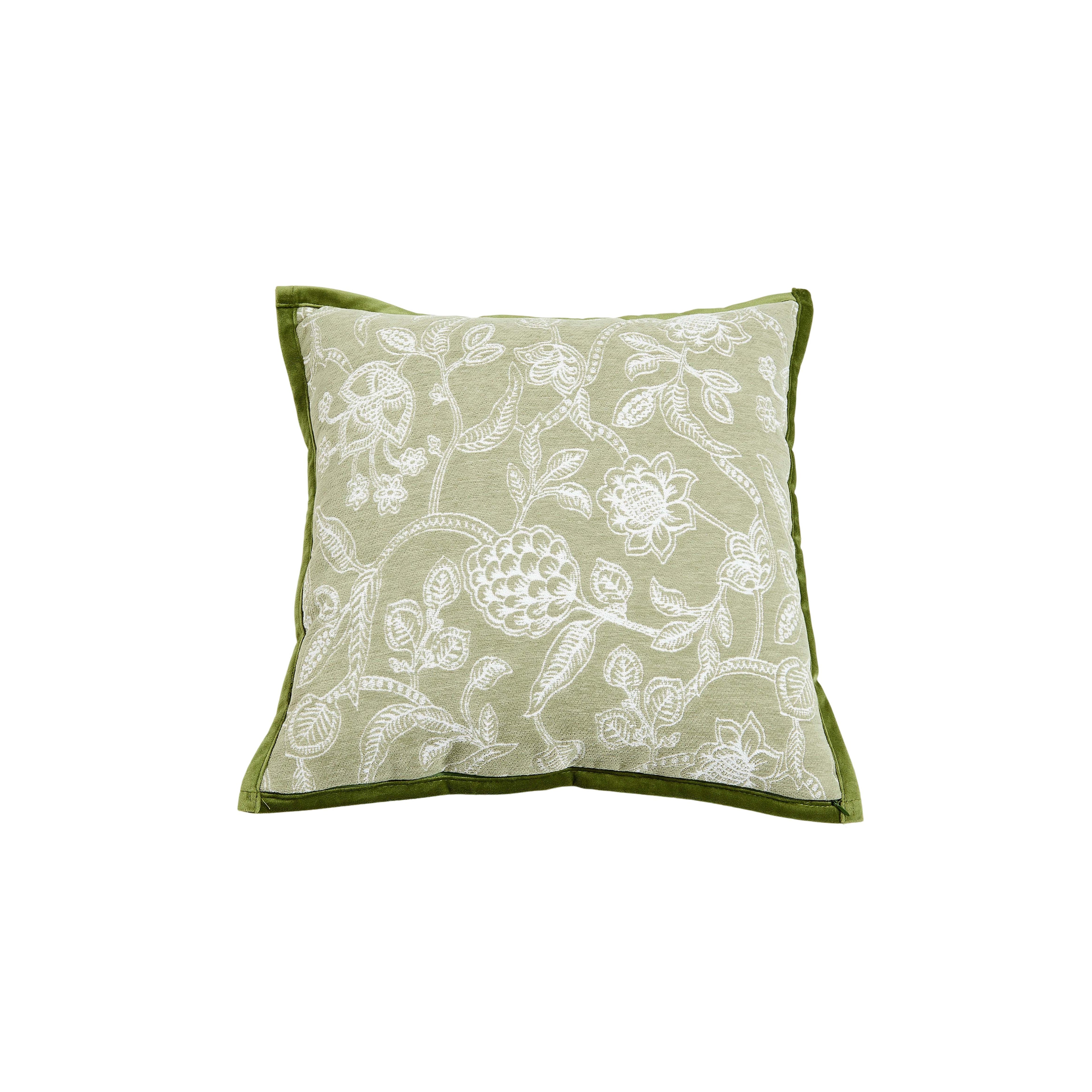 Square Decorative Pillow with Green Chenille & Sketch-Style Forest Pattern